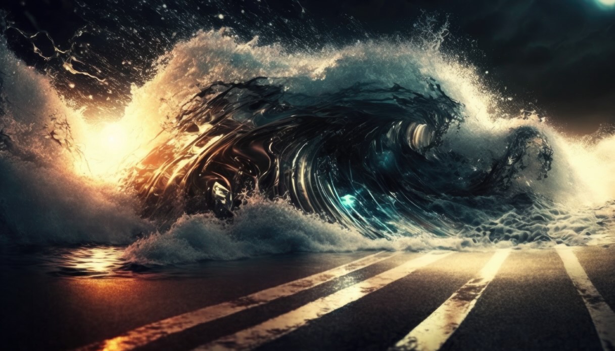 Siamo a Scilla, perla della Costa Viola. Una vettura sta percorrendo la strada che costeggia il mare, infilandosi nel tunnel sotto il promontorio del Castello Ruffo, quando accade l’imponderabile: un muro d’acqua entra violentemente nella galleria e toglie qualsiasi via di fuga. In modo rapidissimo, le ruote slittano e il boato dello schiaffo d’acqua copre il rumore del motore, fino al punto in cui la macchina arresta completamente la marcia. La tensione si taglia con un coltello: l’onda successiva potrebbe rivelarsi fatale.