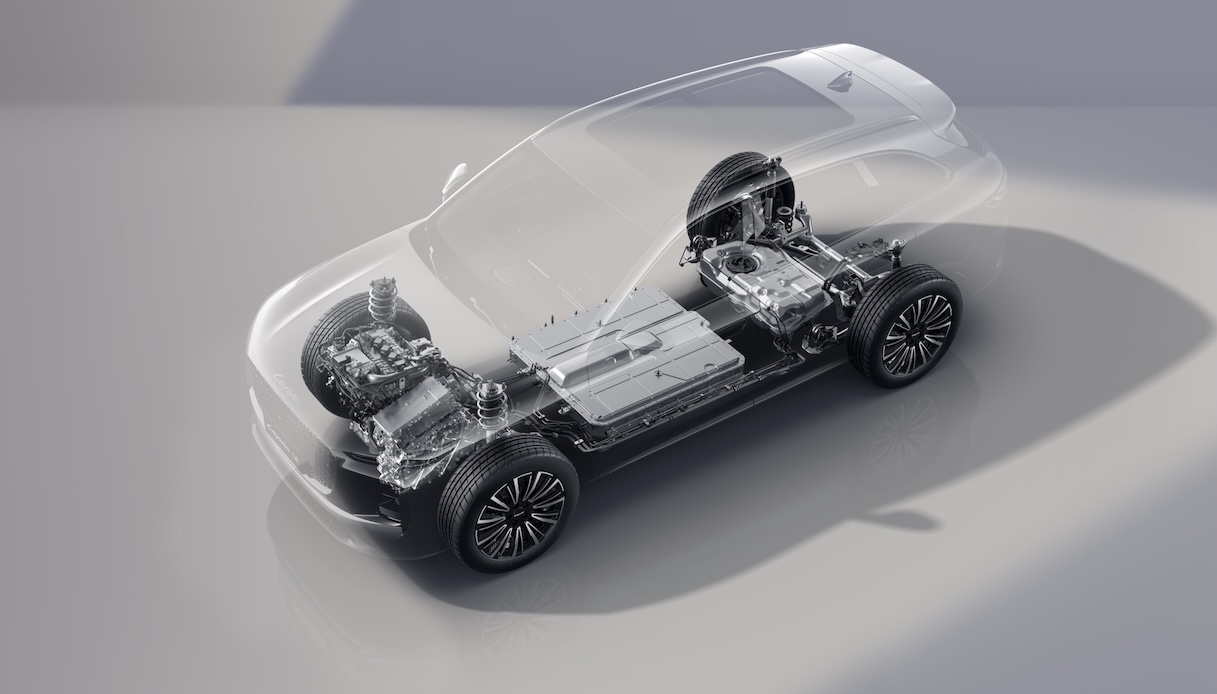 Uno dei temi centrali della piattaforma LEX è la flessibilità energetica. Lepas ha scelto di non puntare tutto su un’unica soluzione, ma di supportare più tecnologie, con un focus particolare sulle motorizzazioni ibride plug-in. In questo ambito, i numeri sono tutt’altro che secondari: il motore termico raggiunge un’efficienza del 45,79%, un valore molto elevato che si traduce in consumi ridotti fino a 4,9 l/100 km in modalità di mantenimento della carica.