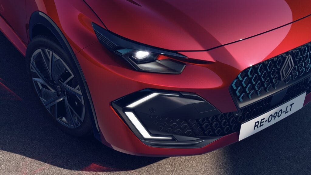 La nuova Renault Clio si presenta con un cofano allungato, un passo portato a 2,59 metri e una linea del tetto in stile coupé con antenna a pinna di squalo e spoiler integrato.