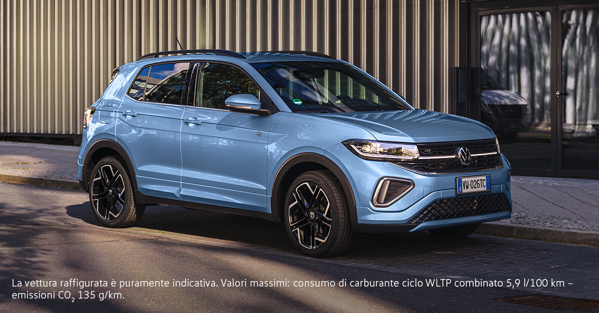 Nuova T-Cross Edition Plus 1.0 TSI 95 CV tua a € 23.756,00 (chiavi in mano IPT esclusa). Prezzo di Listino € 27.400,00. Il prezzo in promozione di € 23.756,00 è calcolato tenendo in considerazione un contributo della marca Volkswagen e delle Concessionarie Volkswagen aderenti all’iniziativa pari ad € 3.644,00 – Anticipo € 4.000,00 – Finanziamento di € 20.136,00 in 23 rate da € 99,00. Interessi € 1.170,00 – TAN 2,99% fisso – TAEG 4,45% – Valore Futuro Garantito pari alla Rata Finale di € 19.029,00, per un chilometraggio totale massimo di 20.000 km – In caso di restituzione del veicolo eccedenza chilometrica 0,20 euro/km. Spese istruttoria pratica € 380,00 (incluse nell’importo totale del credito) – Importo totale del credito € 20.136,00 – Spese di incasso rata € 3,40 / mese – costo comunicazioni periodiche € 0 (in caso di invio cartaceo, il costo è pari ad 1€/anno) – Imposta di bollo/sostitutiva € 50,34 – Importo totale dovuto dal richiedente € 21.439,94. Offerta valida per cliente privato – Gli importi fin qui indicati sono da considerarsi IVA inclusa – Informazioni Europee di Base sul Credito al Consumo, Fogli Informativi e condizioni dei servizi accessori disponibili presso le Concessionarie Volkswagen. Salvo approvazione Volkswagen Financial Services. Volkswagen Financial Services è un marchio commerciale condiviso dalle succursali di Volkswagen Bank GmbH (p. IVA 12513730155) per il credito al consumo, per il leasing finanziario e per i prodotti assicurativi e Volkswagen Leasing GmbH (p. IVA 12549080153) per il noleggio e i piani di manutenzione. Il prodotto Progetto Valore Volkswagen è realizzato e distribuito da Volkswagen Bank GmbH. Offerta valida sino al 31.03.2026 in caso di permuta o rottamazione.